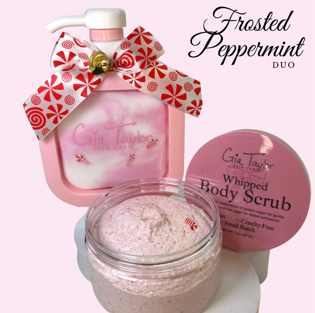 This bundle includes our indulgent Whipped Body Scrub, and our rich Body Lotion, both in our festive Frosted Peppermint scent.